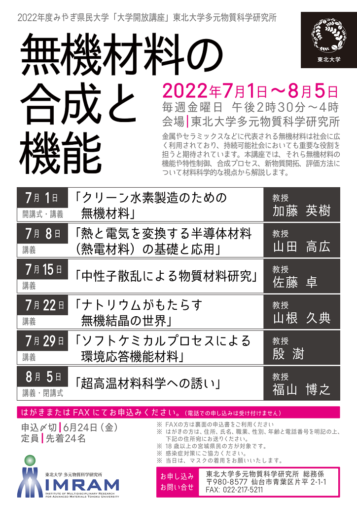 詳しくは東北大学多元物質科学研究所ホームページで確認できます。