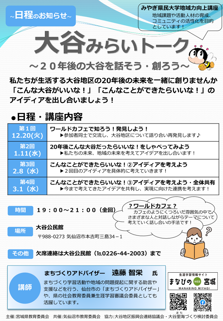 • みやぎ県民大学地域力向上講座「第3回大谷みらいトーク~20年後の大谷を話そう・創ろう~」