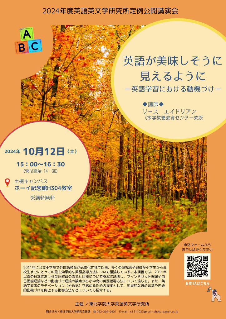 英語英文学研究所定例公開講演会 英語が美味しそうに見えるように―英語学習における動機づけ―